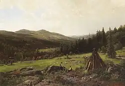 - Gebirgslandschaft mit einer Schäferin, ihrem Kind und ihrer Herde, 1862