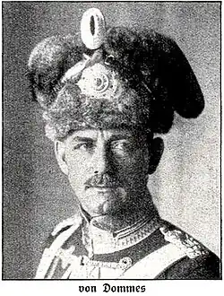 Am 31. März 1918 kam Dommes wieder an die Westfront und erhielt dort das Kommando über die 66. Infanterie-Brigade und drei Monate später über die 2. Division. Auf diesem Posten verblieb er über das Kriegsende hinaus, wurde im Mai 1919 zur Verfügung gestellt und am 12. Juli 1919 aus der Armee verabschiedet und in den Ruhestand versetzt. Dommes erhielt am 27. August 1939, dem sogenannten Tannenbergtag, den Charakter als Generalleutnant verliehen.