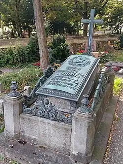 Am 14. Dezember 1865 starb Staatsrat Geh. Obermedizinalrat von Ludwig im Alter von 73 Jahren in Stuttgart. Für seine Bestattung auf dem Uhlbacher Friedhof hatte er genaue Anweisungen getroffen. Ein schlichtes Marmorkreuz hatte er gewünscht, der Stiftungsrat errichtete aber 1869 ein monumentales Grabmal, gefertigt nach dem Entwurf des berühmten Julius Schnorr von Carolsfeld. Auf einem Sandsteinunterbau ruht eine Bronzeplatte, versehen mit den Lebensdaten und einem Relief des Verstorbenen.