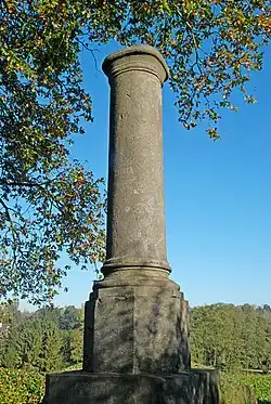 Das Denkmal befindet sich an der Ecke eines Feldes unter einer großen Eiche. Es besteht aus einer Säule toskanischer Ordnung aus Blaustein, deren achteckige Basis auf einem würfelförmigen Postament ruht.[4]