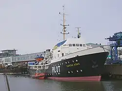Das Jadefahrwasser bildet den Lotsbezirk 2 des Lotsenreviers Weser II/Jade. Die Lotsenstation befindet sich in Wilhelmshaven. Tanker und größere Schiffe, die Wilhelmshaven anlaufen möchten, müssen für die Fahrstrecke zwischen dem Hafen und der Deutschen Bucht einen Lotsen an Bord nehmen.[26] Die Lotsen werden in See von einem Lotsenschiff mit Hilfe eines Versetzboots übergeben und übernommen oder können mit Hubschraubern an und von Bord gebracht werden.