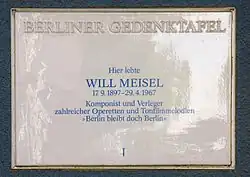 • Will Meisel : *17.9.1897 – †29.4.1967 ; Kurzbiografie und Werkverzeichnis. Edition Meisel, Berlin 2014, OCLC 881085055.