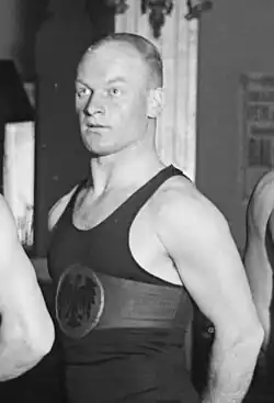 - 1931, 3. Platz, Mi, OD, mit 317,5 kg, hinter Rudolf Ismayr, München, 340 kg und Hoffmann, 317,5 kg