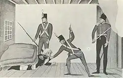 1805 wurde William Bligh zum Gouverneur der britischen Kolonie New South Wales im heutigen Australien ernannt.[6] Hier wurde er in die Rum-Rebellion verwickelt, einen Aufstand korrupter Offiziere.