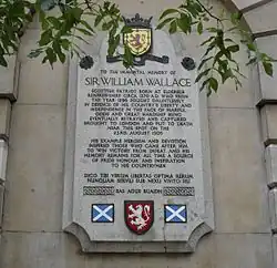 Sir William Wallace wurde gegen eine hohe Belohnung von Sir John de Menteith, dem Burgherrn von Dumbarton Castle, verraten. Gefangen genommen wurde Wallace am 5. August 1305 in Robroyston bei Glasgow. Kurz darauf wurde er an ein Pferd gebunden und auf einer zweiwöchigen Reise nach London verschleppt. Dort wurde er des Hochverrats angeklagt und zum Tode durch Hängen, Ausweiden und Vierteilen verurteilt. Dies war bis ins frühe 19. Jahrhundert in Großbritannien die festgeschriebene Strafe für Verrat am König. Die Hinrichtung fand am 23. August 1305 statt.[6]