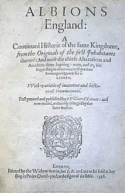 Warner studierte an der Universität Oxford (Magdalen Hall) ohne Abschluss und erhielt eine juristische Ausbildung, so dass er später in London als Anwalt arbeitete. Bekannt war er seinen elisabethanischen Zeitgenossen vor allem als Dichter. 1586 erschien sein Hauptwerk Albion´s England, das sehr populär war und viele Auflagen erlebte, in denen es auch erheblich erweitert wurde (von zuerst vier Kapiteln zu 16 in der postumen Ausgabe von 1612). Die Geschichte reicht von Noah bis in die Gegenwart (Enthauptung von Maria Stuart). Das Buch ist Henry Carey gewidmet.