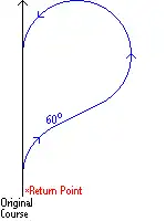 Alternativen: Als Sofortmanöver kann, je nach Situation und Fahrzeug, ein einfacher Drehkreis das geeignetste Manöver sein. Wenn das Schiff bereits mehr als einen Drehkreisdurchmesser vom Unfallort entfernt ist, kann auch der Scharnow-Turn geeignet sein, bei dem die zwar gleiche Geometrie jedoch in umgekehrter Richtung durchfahren wird.