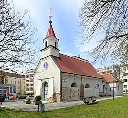 Die Bauweise des Dachreiters zeichnet sich durch einen achteckigen Aufsatz über quadratischem Sockel, die rundbogigen Schallfenster und einen Pyramidenhelm aus. Der Saalraum ist durch eine Stichkappentonne gewölbt. Das Gebäude befindet sich in der Nähe des Steiner Tor an der Arbeitergasse. Seit 1947 dient die Kapelle der altkatholischen Kirche als Gottesdienststätte.[1]