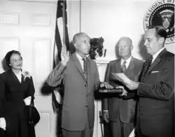 Wilton Persons (2. von links) bei seiner Vereidigung als Stabschef des Weißen Hauses am 7. Oktober 1958 mit Präsident Eisenhower (2. von rechts).