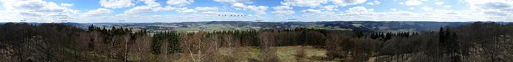 Von der oberen Aussichtsplattform des Wilzenbergturms fällt der Blick nicht nur in das Rothaargebirge und hinab nach Schmallenberg, sondern auch hinüber zu den Saalhauser Bergen und zum Lennegebirge.