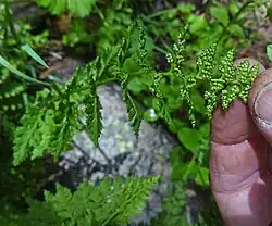 Rostroter Wimperfarn (Woodsia ilvensis) in Maine (USA) | ||||||||||||