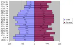 23,2 % der Bevölkerung waren unter 18 Jahre alt, 55,6 % waren zwischen 18 und 64 und 21,2 % waren 65 Jahre oder älter. 51,8 % der Bevölkerung war weiblich.