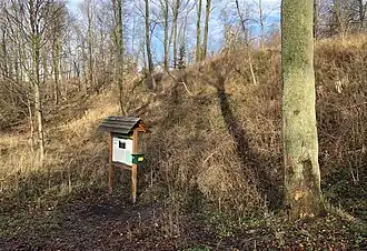 ![]() Informationstafel und Stempelkasten vor dem Wall der Winzenburg | ||