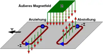 Wirbelströme erzeugen ihrerseits ein Magnetfeld, das gemäß der Lenzschen Regel der Änderung des Feldes entgegenwirkt. Dadurch wird bei hohen Frequenzen und großen Querschnitten der Strom aus der Mitte des Leiters verdrängt (Skin-Effekt).