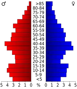 Auf das gesamte County bezogen setzte sich die Bevölkerung zusammen aus 25,4 Prozent Einwohnern unter 18 Jahren, 7,6 Prozent zwischen 18 und 24 Jahren, 29,6 Prozent zwischen 25 und 44 Jahren, 24,4 Prozent zwischen 45 und 64 Jahren und 13,0 Prozent waren 65 Jahre alt oder darüber. Das Durchschnittsalter betrug 38 Jahre. Auf 100 weibliche Personen kamen 100,2 männliche Personen. Auf 100 Frauen im Alter von 18 Jahren oder darüber kamen statistisch 97,0 Männer.