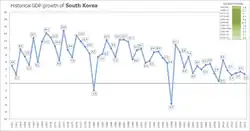 - ↑ South Korea: Growth of the real gross domestic product (GDP) from 2016 to 2026. In: statista.com. 2021, abgerufen am 26. Oktober 2021 (amerikanisches Englisch).