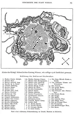 Im Schonischen Krieg wurde Wismar 1675 von den Dänen erobert und blieb bis November 1680 dänisch besetzt; danach kam Wismar wieder an Schweden und wurde unter schwedischer Regierung zu einer der stärksten Seefestungen ausgebaut.[14]