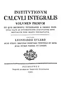 In seinem Werk Institutiones calculi integralis (1768–1770), erschienen in drei Bänden, beschäftigte sich Euler mit der Integralrechnung.[21] Darin finden sich die Methoden der unbestimmten Integration in moderner Form erschöpfend dargestellt für die Fälle, in denen die Integration auf elementare Funktionen führt. Viele Methoden sind erst von Euler entwickelt worden, und noch heute ist die Eulersche Substitution, mit deren Hilfe gewisse irrationale Differentiale rationalisiert werden können, ein Begriff.[22] Er fand einen Weg, Integrale mit komplexen Grenzen zu berechnen, womit er wichtige Teile der Entwicklung der komplexen Analysis vorwegnahm.