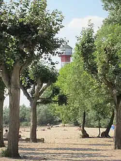 Im Mai 2008 wurde der Sandstrand zwischen dem Leuchtturm und dem Anleger, der durch den Schiffsverkehr auf der Elbe über die Jahre in Mitleidenschaft gezogen worden war, durch Aufspülungen im Regenbogen-Verfahren und mit Uferbefestigungen saniert.[3]