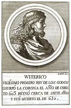 Im April 610 fiel Witterich, der arianische Restaurationsbestrebungen förderte, schließlich einer Verschwörung der katholischen Fraktion des Hofadels und des katholischen Klerus zum Opfer. Er wurde bei einem Bankett ermordet, sein Körper wurde anschließend schmachvoll durch die Straßen gezogen und ohne Ehrerbietung begraben.[1] Sein Verbündeter, der arianische Bischof Sunna, wurde ins Exil geschickt. Witterichs Nachfolger wurde Gundemar.