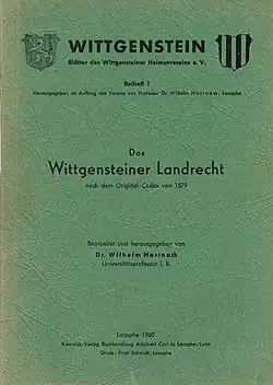 • Wilhelm Hartnack: Das Wittgensteiner Landrecht. In: Wittgenstein, Blätter des Wittgensteiner Heimatvereins e.V., Jahrg. 47, Bd. 23, H. 4, Laasphe 1959, S. 183–191.