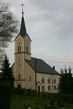 1896 erfolgte die Grundsteinlegung und am 26. August 1897 wurde Richtfest gefeiert. Der Bauplan stammt von Carl Ostreich aus Zschopau, welchen Baumeister Anke abänderte, da seitens der Glaubensgemeinde ein Gebäude mit Turm gewünscht wurde. Die Bauausführung übernahm Bauunternehmer Weiße in Witzschdorf. Die Gesamtkosten beliefen sich auf 24.508 Mark, die Einweihung fand am 11. September 1898 statt. Das Kirchengebäude ist 27 Meter hoch, 20,5 Meter lang und 11 Meter breit. Der Glockenstuhl erhielt 3 Bronzeglocken, die Orgel stammt von der damaligen Firma Schmeisser aus Rochlitz.