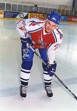 Wladimir Antipin mit dem Siegerpokal der European Hockey League, 1999