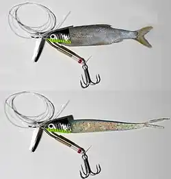 Ein Wobbler (auch Crankbait)[1] ist ein künstlicher Köder, der für das Angeln von Raubfischen verwendet wird. Der Köder führt beim Einholen taumelnde Bewegungen aus und soll einen kranken, geschwächten Fisch imitieren. Für den Erfolg entscheidend ist hier auch die richtige Führung des Kunstköders. Der Köder wird entweder normal über die Rolle eingekurbelt oder er wird getwitcht was heißt, er wird durch Schläge in die Rute extrem „reizend“ geführt. Eine besondere Form der Wobbler stellen Popper dar. Es existieren auch Spezialformen, die nicht für das Angeln auf Raubfische, sondern für das Angeln von Tintenfischen konzipiert sind. Wobbler werden unter anderem von den Firmen Rapala, Ugly Duckling, Hybrida, Zalt, Savage Gear und Illex angeboten.