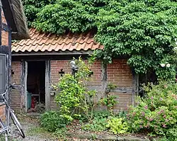 - dem Stall als verklinkerter Massivbau aus dem 19. Jahrhundert mit Satteldach,