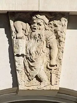 Die Straßenfront ist mit weißen Klinkern belegt und reichlich mit Bauschmuck aus hellem Sandstein versehen. Neben ornamentalen Schmuckformen kommen auch einige als Relief dargestellte Fabelwesen vor. Das brachte dem Haus den Beinamen Märchenhaus ein.[5]