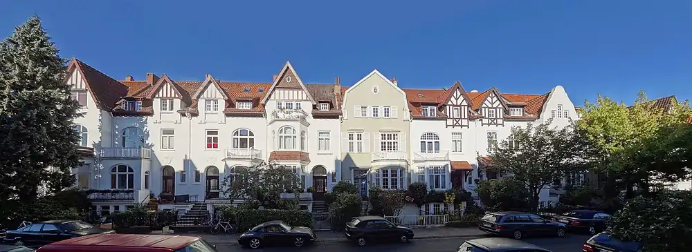 Eine typische Bebauung der Jahrhundertwendezeit sind die Reihenhäuser der Hermann-Allmers-Straße.