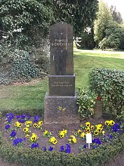 Wolfgang Borchert ruht in der Familiengrabstätte auf dem Friedhof Ohlsdorf. Sie liegt im Planquadrat Y 29 südlich von Kapelle 6.