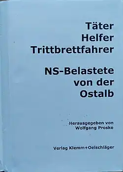 - ↑ Wolfgang Proske (Hrsg.): Täter, Helfer, Trittbrettfahrer – NS-Belastete aus… (Bd. 1+2: Klemm & Oelschläger Verlag, Ulm 2010 und 2013, ISBN 978-3-945893-05-0 und ISBN 978-3-86281-062-8; Bd. 3: Verlag Freiheitsbaum Reutlingen 2014, ISBN 978-3-945893-02-9; ab Bd. 4: Kugelberg Verlag, Gerstetten 2015, 2016 und 2017, ISBN 978-3-945893-00-5, ISBN 978-3-945893-04-3 und ISBN 978-3-945893-06-7).