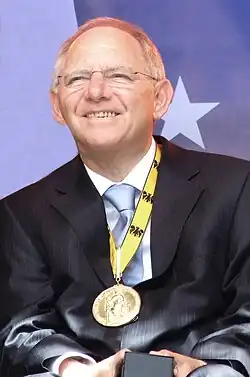 - ↑ International: Wolfgang Schäuble erhält den Karlspreis 2012. In: Focus Online. 10. Dezember 2011, abgerufen am 31. Dezember 2016 (DPA-InfolineRS).