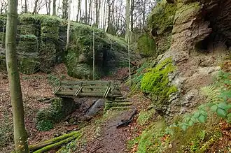 - ↑ Manfred Schöttle: Geologische Naturdenkmale im Regierungsbezirk Karlsruhe. Hrsg.: Landesanstalt für Umweltschutz Baden-Württemberg. 2000, ISBN 3-88251-079-X, ISSN 0949-0256, S. 127–128 (pudi.lubw.de [PDF; 5,6 MB; abgerufen am 26. Juni 2025]).