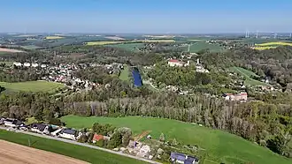 Blick auf die Ortslage Wolkenburg mit der Zwickauer Mulde