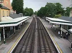 Zwar fährt die U-Bahn hier erst seit Beginn der 1940er Jahre, doch die Station wurde bereits mehr als siebzig Jahre zuvor als Haltepunkt einer Vorortseisenbahn gebaut. Vor dem Stationsgebäude befindet sich eine weite offene Fläche, die einst als Ladeplatz für Kohle diente und später in einen Parkplatz umgewandelt wurde. Der Haupteingang ist am Ende einer kurzen Sackgasse, die zur Woodside Park Road führt. In die Vorderfront eingelassen ist ein Briefkasten mit den Initialen VR (Victoria Regina); diese stehen für Königin Victoria, die zum Zeitpunkt des Streckeneröffnung regierte. Ein Nebeneingang befindet sich auf der Westseite der Station. Beide Bahnsteige sind durch eine Fußgängerbrücke miteinander verbunden, die auch ohne gültigen Fahrausweis benutzt werden kann. Die Architektur des Stationsgebäudes aus viktorianischer Zeit ist weitgehend erhalten geblieben.