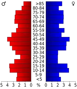 21,7 Prozent der Bevölkerung waren unter 18 Jahre alt. 7,4 Prozent zwischen 18 und 24 Jahre, 22,1 Prozent zwischen 25 und 44 Jahre, 23,9 Prozent zwischen 45 und 64 Jahre und 24,8 Prozent waren 65 Jahre alt oder älter. Das Durchschnittsalter betrug 44 Jahre. Auf 100 weibliche Personen kamen 96,8 männliche Personen. Auf 100 Frauen im Alter von 18 Jahren und darüber kamen 96,8 Männer.