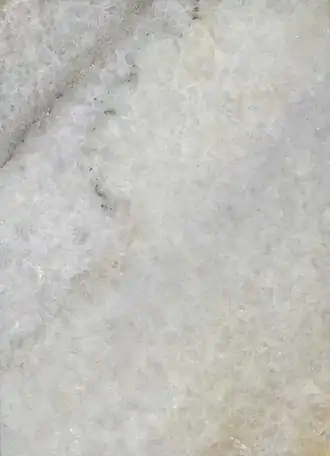 In der Hauptmasse handelt es sich um einen calcitischen Marmor. Dolomitgestein tritt sekundär in den Aufschlüssen von Sinatengrün und Göpfersgrün auf.[3]