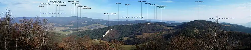 Die Wysokie Skałki bieten eine Aussicht auf die umliegenden Gebirgszüge der Mittleren Pieninen, der Zipser Magura, der Tatra sowie der Sandezer Beskiden.