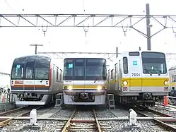 Züge aus den Serien 10000, 07, und 7000 (von links) | |||||||||||||||||||||||||||||||||||||||||||||||||||||||||||||||||||||||||||||||||||||||||||||||||||||||||