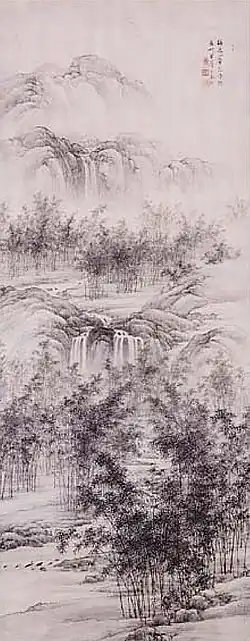Zu seinen Meisterwerken gehören „Wasserfall und Bambushain“ (畳泉密竹図, Jōsen mitchiku-zu) im Städtischen Museum Nagoya (名古屋市博物館), eine Hängerolle, die als „Wichtiger Kunstgegenstand“ (重要美術品, Jūyō bijtsuhin) registriert ist. Weiter ist besonders erwähnenswert ein Stellschirm-Paar mit dem Titel „Kiefer, Bambus und Pflaume“ (松竹梅, Chōchikubai-zu): das sind die klassischen „Drei Freunde der kalten Jahreszeit“ in Ostasien. Das Werk befindet sich im Cleveland Museum of Art.