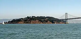 Sie befindet sich in der Bucht zwischen San Francisco und Oakland. Durch die kleine Insel verläuft die Interstate 80 durch einen Tunnel. Vom West- und Ostufer der Bucht führt der Highway über die zweiteilige San Francisco-Oakland Bay Bridge auf die felsige Insel zu und dann durch den Tunnel. Über eine schmale Landenge ist die Insel mit der künstlich aufgeschütteten Insel Treasure Island verbunden.