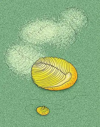 - ↑ Seilacher A, Grazhdankin D, Legouta A: Ediacaran biota: The dawn of animal life in the shadow of giant protists. In: Paleontological Research. 7. Jahrgang, Nr. 1, 2003, S. 43–54 (englisch).