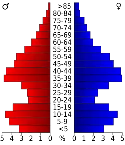 Auf das gesamte County bezogen setzte sich die Bevölkerung zusammen aus 29,1 Prozent Einwohnern unter 18 Jahren, 6,6 Prozent zwischen 18 und 24 Jahren, 30,7 Prozent zwischen 25 und 44 Jahren, 24,4 Prozent zwischen 45 und 64 Jahren und 9,1 Prozent waren 65 Jahre alt oder darüber. Das Durchschnittsalter betrug 36 Jahre. Auf 100 weibliche Personen kamen 96,5 männliche Personen. Auf 100 Frauen im Alter von 18 Jahren oder darüber kamen statistisch 93,5 Männer.