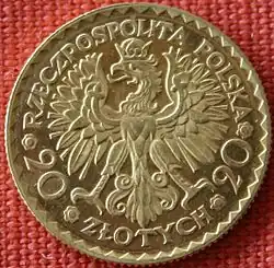 1924 wurde der Złoty nach der Hyperinflation des Ersten Weltkriegs und dem damit verbundenen Geldchaos erneut eingeführt. Er ersetzte die Polnische Mark des Regentschaftskönigreichs Polen, die seit 1916 in Umlauf war und nach Gründung der Zweiten Polnischen Republik 1918 zunächst beibehalten wurde. Der damalige Umrechnungskurs war 1 Złoty = 0,1687 Gramm Gold (= 1.800.000 Polnische Mark). Im Umlauf waren: Banknoten von 5, 10, 20, 50, 100 und 500 Złoty; Banknoten von 1000 und 5000 Złoty waren vorbereitet, wurden aber nie eingeführt. Die Münzen waren: 2, 5 und 10 Złoty in Silber, es gab auch 10 und 20 Złoty in Gold (Sammlermünzen, diese Münzen waren nicht für den Zahlungsverkehr bestimmt und konnten stattdessen bis 1939 gegen Goldabgabe und Prägekosten von der polnischen Notenbank erworben werden), diese wurden geprägt nach den Normen der Lateinischen Münzunion zu 2,9 g Feingold für die 10 und 5,81 g Feingold für die 20-Złoty-Münze. Weiterhin wurden 1 Złoty, 50, 20 und 10 Groschen in Nickellegierung, 1, 2 und 5 Groschen in Bronze geprägt.