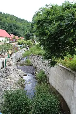 Der Bach entspringt in der Preseka im alten Grenzgebiet zwischen Mähren und Schlesien. In der ersten Hälfte des 13. Jahrhunderts begann am Querberg der Goldbergbau. Der Oberlauf des Baches wurde zu einem der Zentren des mittelalterlichen Goldbergbaus in Schlesien. Außerdem wurden Kupfer und Silber gefördert. Im 17. Jahrhundert setzte der Niedergang des Zuckmantler Bergbaus ein.