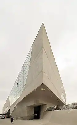 - ↑ Laura Weißmüller: Mit dem Tempo eines Sportwagens. In: Süddeutsche Zeitung. 8. April 2016, Gebäudeskizze von Hadid.