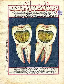 - ↑ Werner E. Gerabek: Zahnheilkunde. In: Werner E. Gerabek, Bernhard D. Haage, Gundolf Keil, Wolfgang Wegner (Hrsg.): Enzyklopädie Medizingeschichte. De Gruyter, Berlin / New York 2005, ISBN 3-11-015714-4, S. 1518–1523; hier: S. 1518.