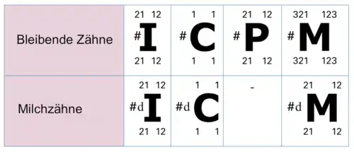 - ↑ Z. Krysinski: The three-digit system of designating supernumerary teeth. In: Quintessence international, Berlin, 1985, Band 17, Nr. 2, 1986, S. 127–128, ISSN 0033-6572, PMID 3457399.